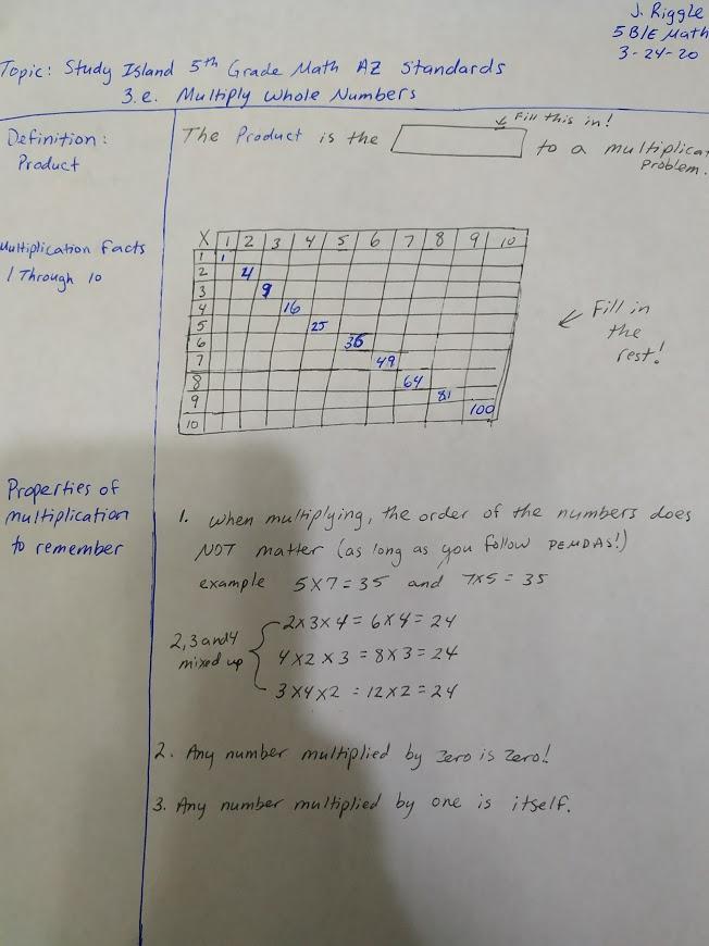 3. Earn 100% correct on Study Island 3e Multiply Whole Numbers. If you are working in the packet, it corresponds to pages 78-80. That's about the middle. https://www.studyisland.com/login